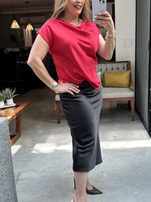 TOPSBLUSA SATEN MANGA CORTA ROJA