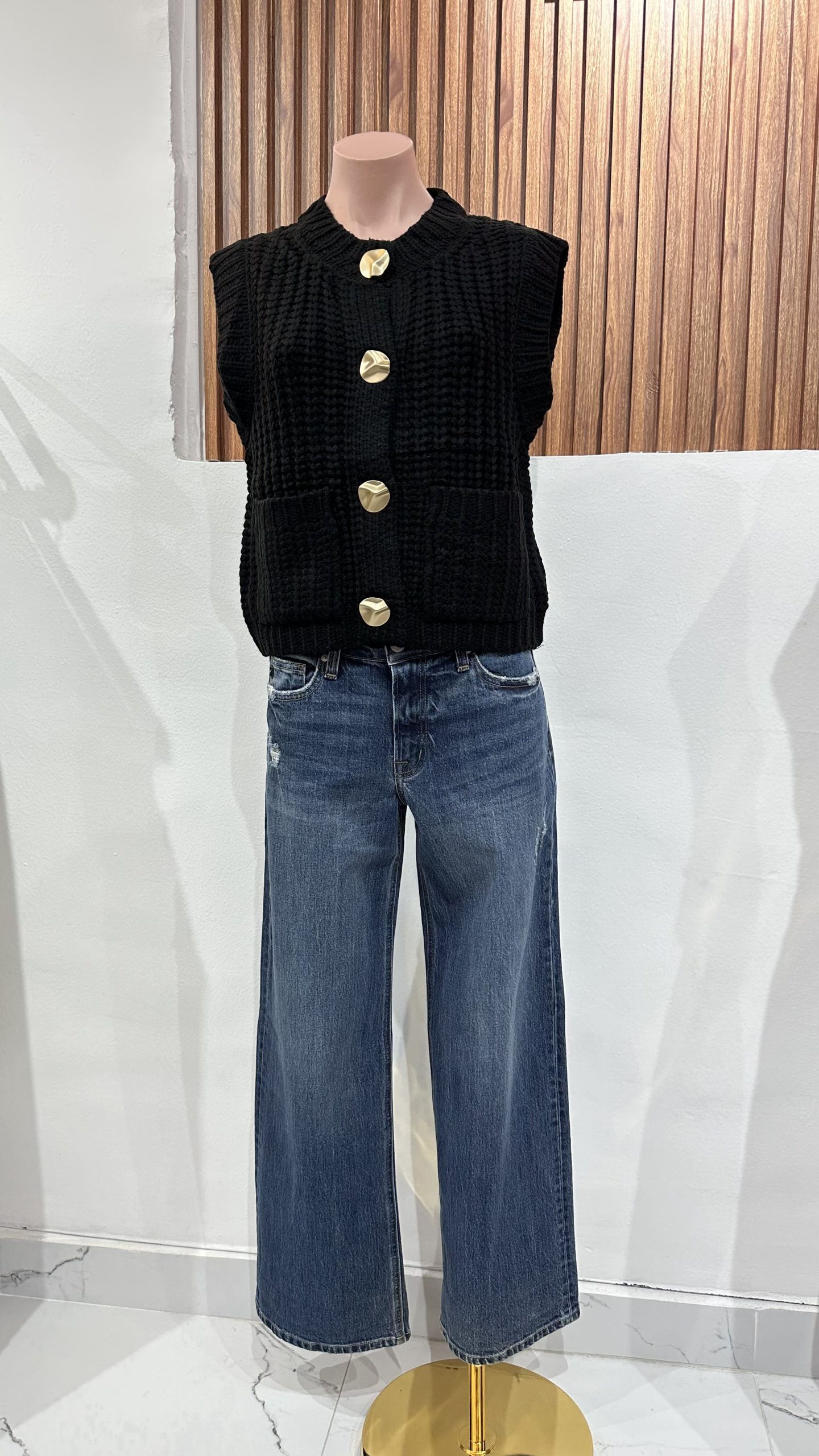 BLUSA TEJIDA NEGRA BOTON