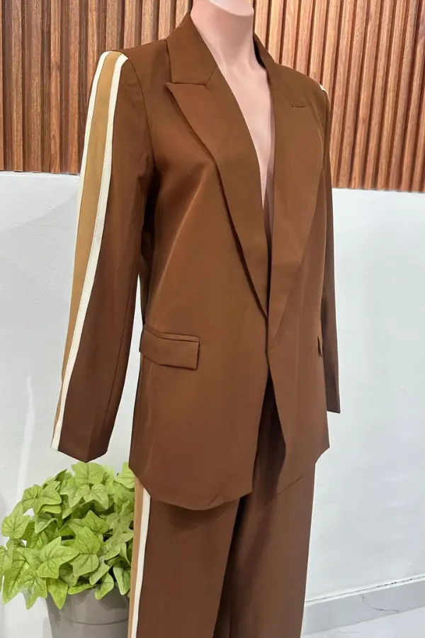 CONJUNTO BLAZER CAFE CON RAYA