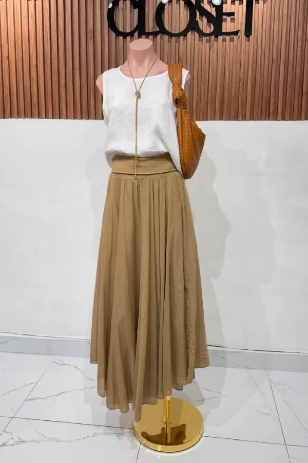 FALDA SATEN LONG COFFEE