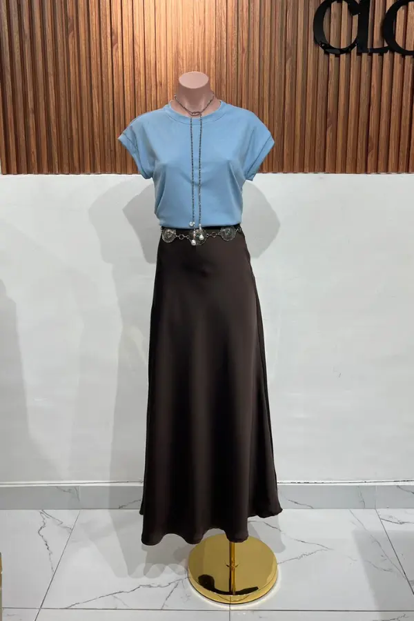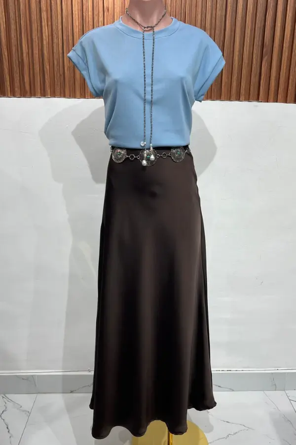 FALDA SATEN LONG COFFEE